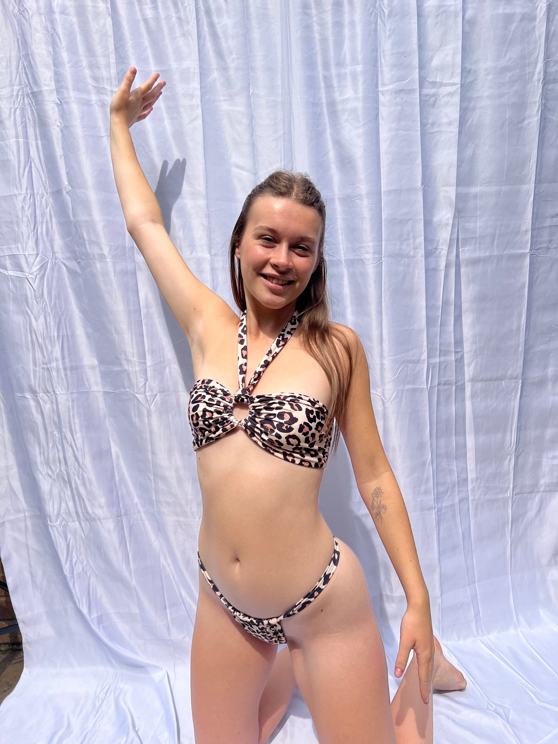 Our gorgeous leopard print bikini top can be worn multiple ways! If halterneck style isn’t your thing, then turn this beauty into a bandeau by removing the around the neck strap!